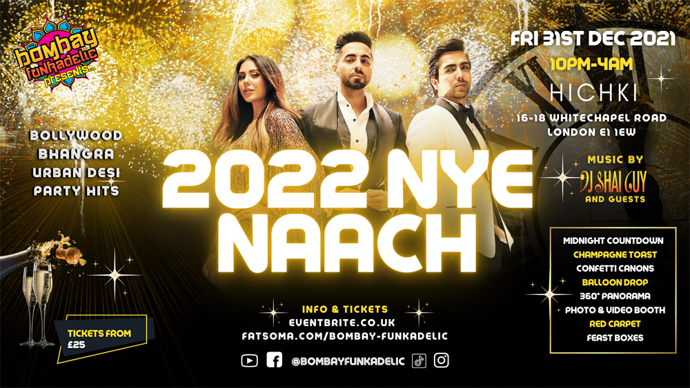Bombay Funkadelic presents its annual New Year’s Eve party. Celebrate the end of 2021 and beginning of 2022 with your loved ones in the heart of London city.