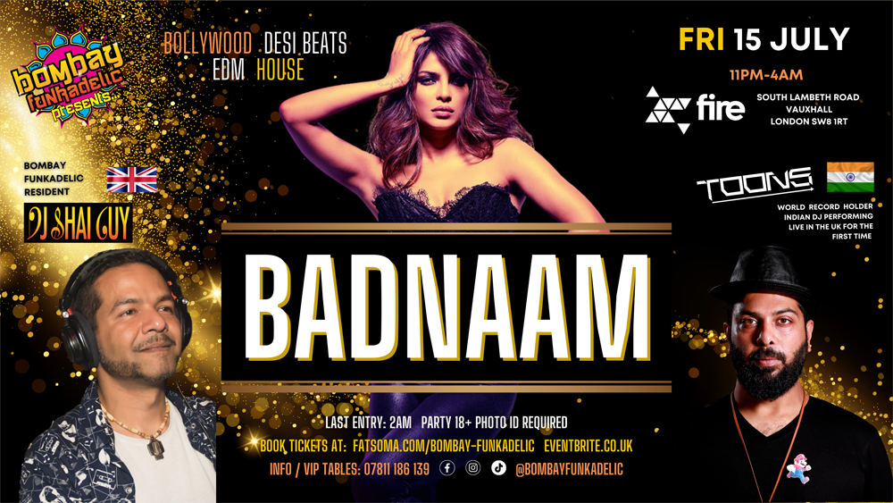 For more info on VIP tables and drinks deals Call / WhatsApp the Bombay Funkadelic Team on: 07811 186 139