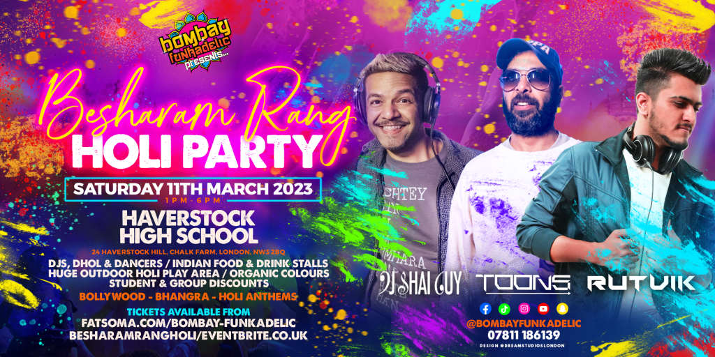 Bombay Funkadelic presents its first large scale outdoor Holi party in Camden, London.