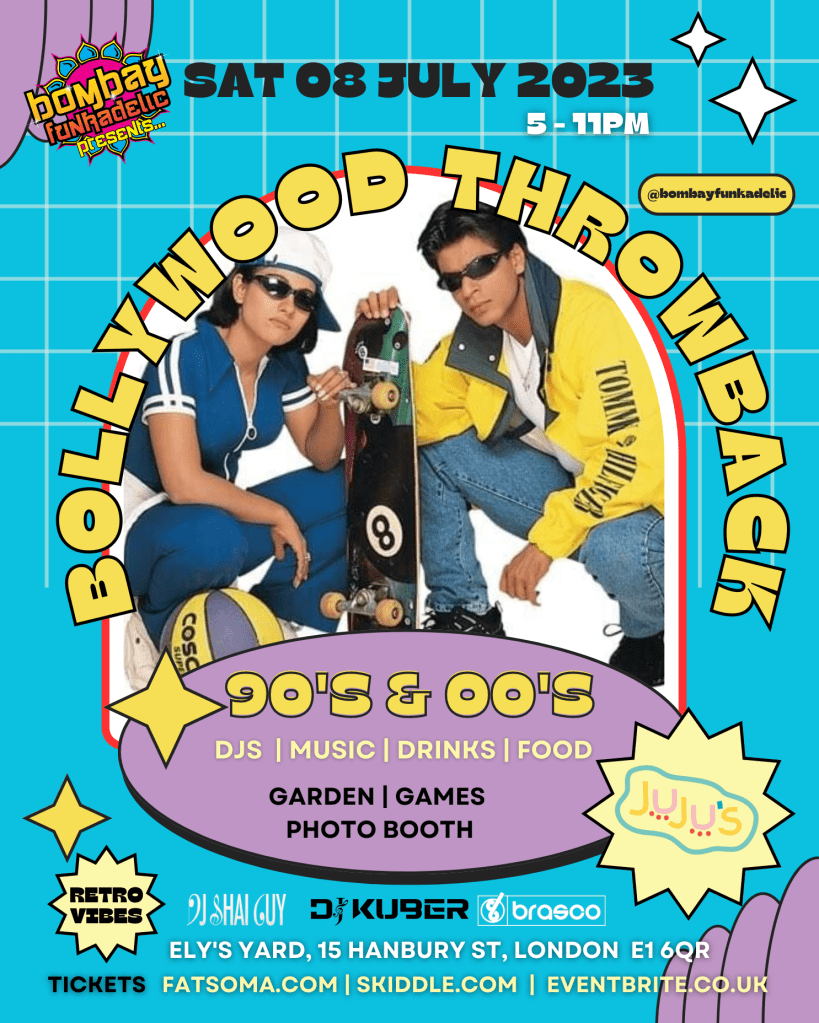 Enjoy a Retro 90’s & 00’s Bollywood party at Juju’s Bar and Stage, a new warehouse bar and live music venue located in Truman Brewery on Brick Lane. 400 capacity indoor bar and outdoor garden.