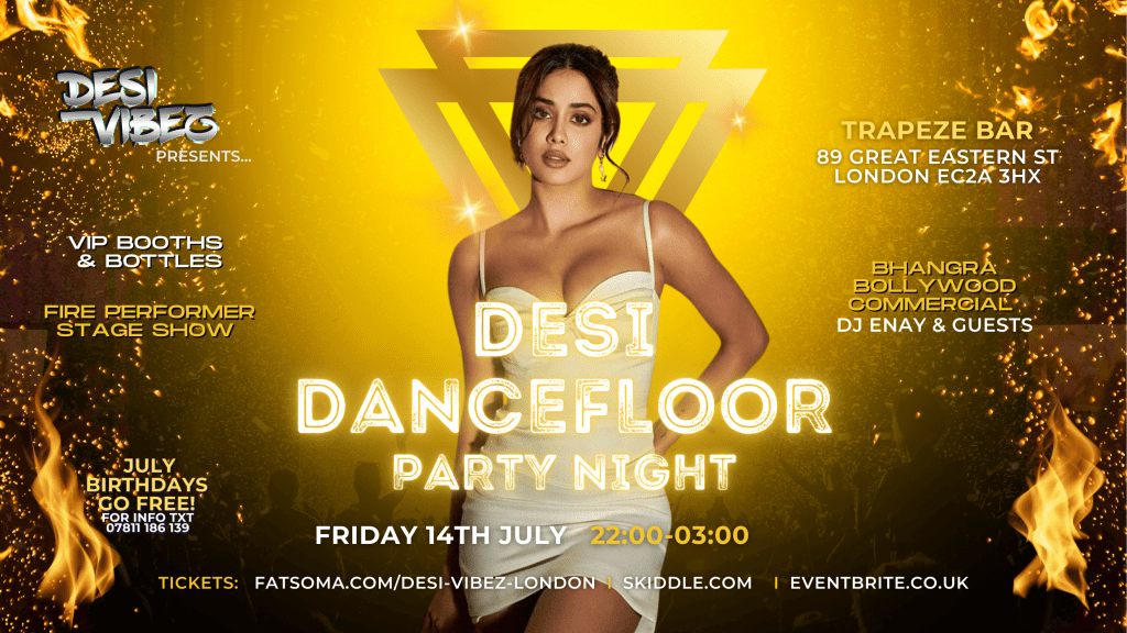 Does your birthday fall between July 1-14? Get in touch with the Desi Vibez team for more info on how to claim your complimentary ticket in advance of the event. Text/WhatsApp us on 07811 186 139