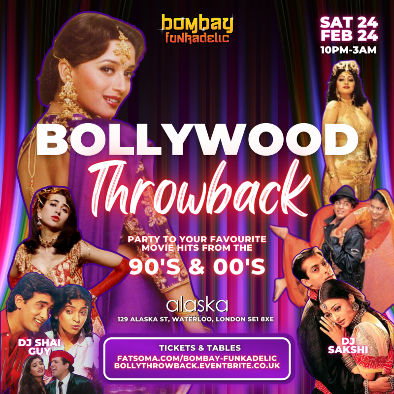 Sat 24 Feb – Bollywood Throwback 90s & 00s Party @ Alaska nightclub, Waterloo