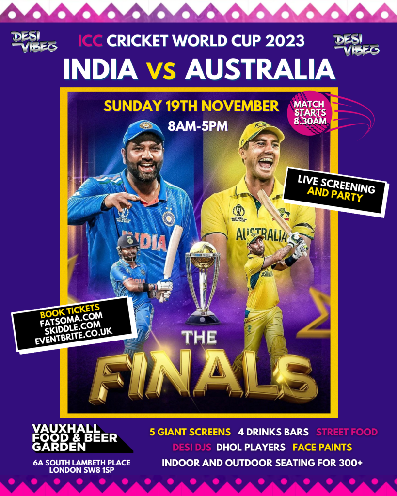 Witness India vs TBC on Sunday 19th November at London’s popular Vauxhall Food and Beer Garden.