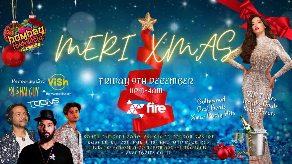 Bombay Funkadelic presents it’s annual Meri Xmas party. Celebrate the festive season with friends at Fire, one of London’s most popular nightclubs. 600+ capacity venue located one minute’s walk from Vauxhall station.